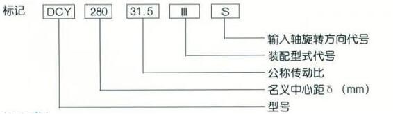 名義中心距為280mm,公稱傳動比為31.5,裝配型式第Ⅲ種,輸入軸順時針方向旋轉(zhuǎn)的三種傳動減速器標(biāo)記為DCY280-31.5-ⅢS。